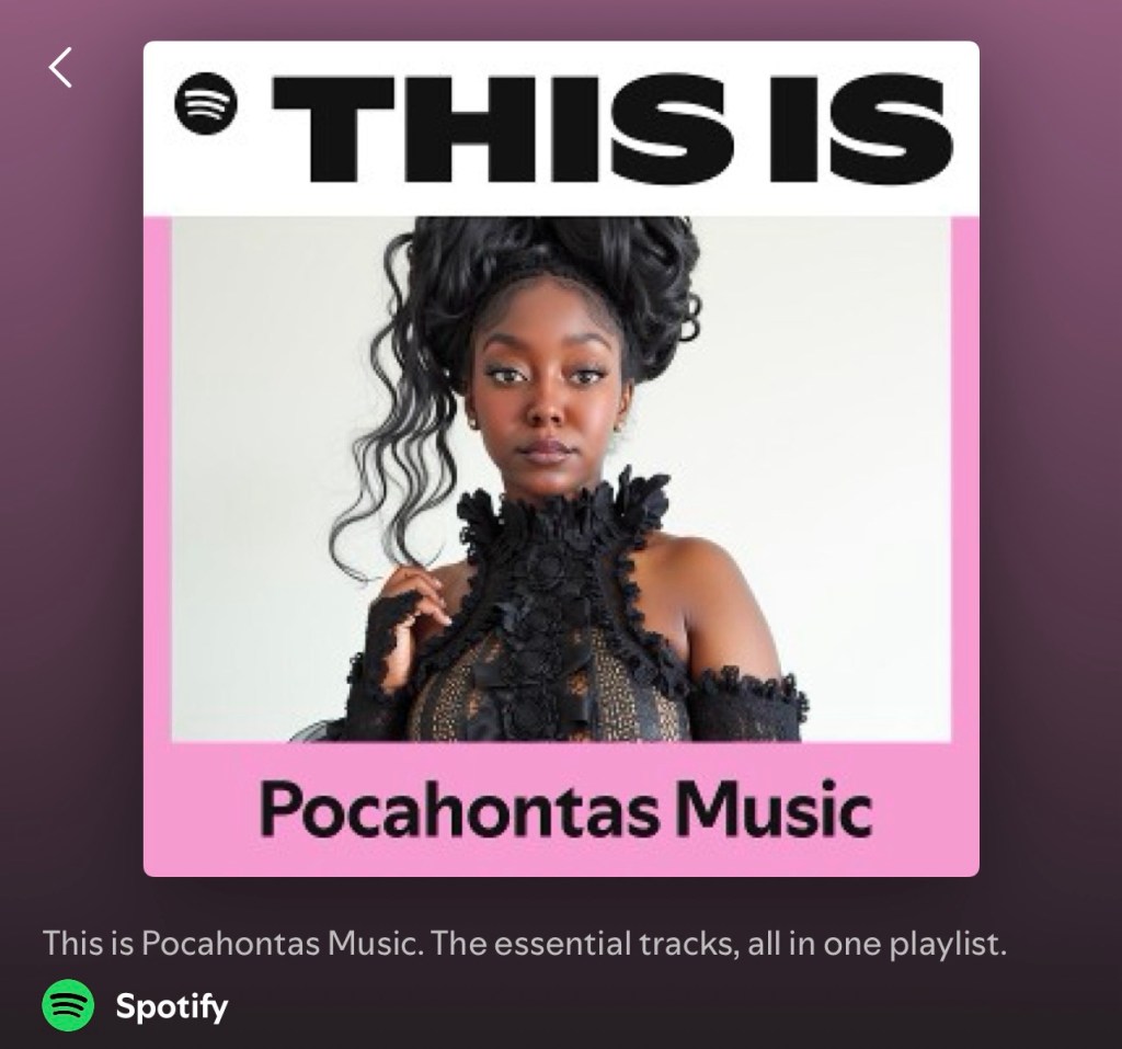 In a powerful nod to her growing influence in the music world, Spotify has officially curated a playlist dedicated entirely to the genre-blending, soul-speaking artistry of Pocahontas Music. The playlist, available here, is a streamlined collection of her standout tracks—giving fans, old and new, a centralized place to experience the full spectrum of her talent.